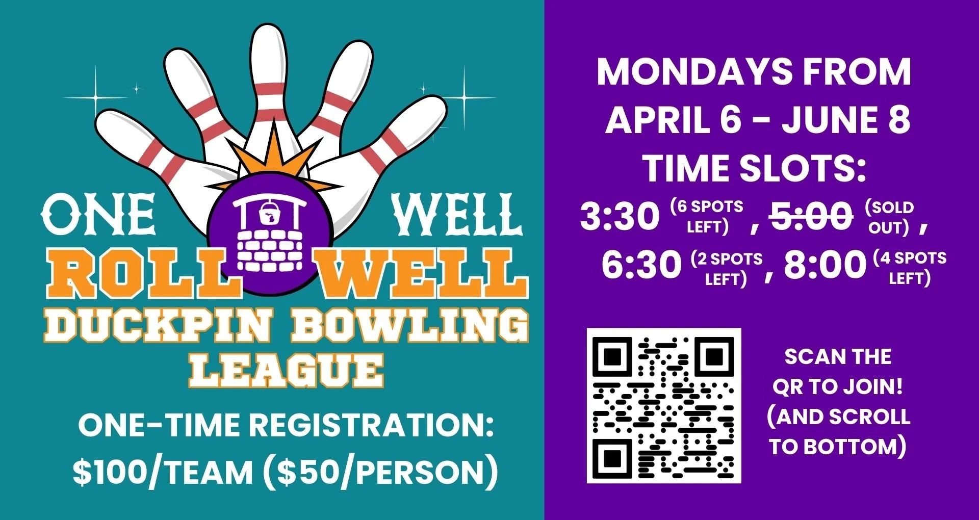 Calling all duckpin bowlers! Introducing the newest addition to our weekly leagues - ROLL WELL - a duckpin bowling league!